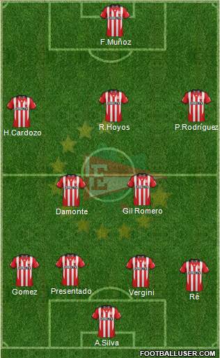 Rulli(PT) · Ré(CT) · Desábato(CT) · Goñi(LI) · Aguirregaray(LD) · Damonte(CCD) · Verón(MC) · Rodriguez(MI) · Lanzini(MD) · Carrillo(DI) · Klusener(DD)