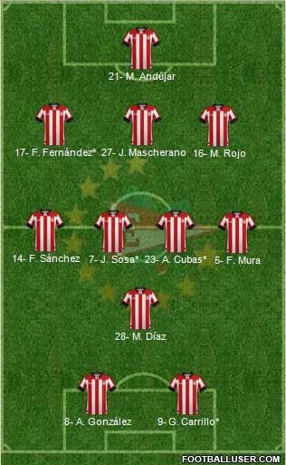 González · Díaz · Rodríguez · González · Mascherano · Gómez · Godoy · Pasquini · Ortiz · Colombo · Andújar