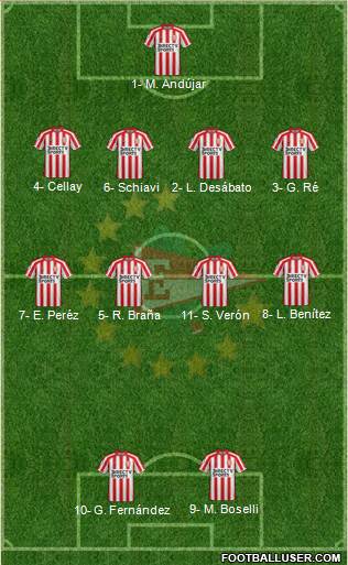 11 JR Verón · 7 Ribaudo · 9 Conigliaro · 8 Bilardo · 10 Echecopar · 5 Madero · 4 Malbernat · 3 Pachamé · 2 Aguirre Suárez · 6 Spadaro · 1 Poletti