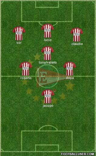 21-Andujar · 18-Noguera · 13-Evanguelista · 4-Gomez · 14-Sanchez · 24-Estevez · 22-Braña · 9-Rodriguez · 10-Fernandez · 8-Pellegrini · 16-Pavone