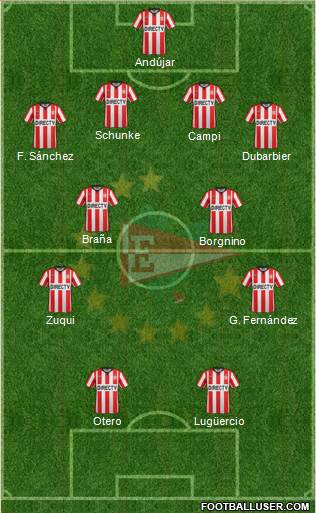 Andujar · Desábato · Schunke · Campi · Sánchez · Braña · Gómez · Lattanzio · Díaz · Rodríguez · Pavone