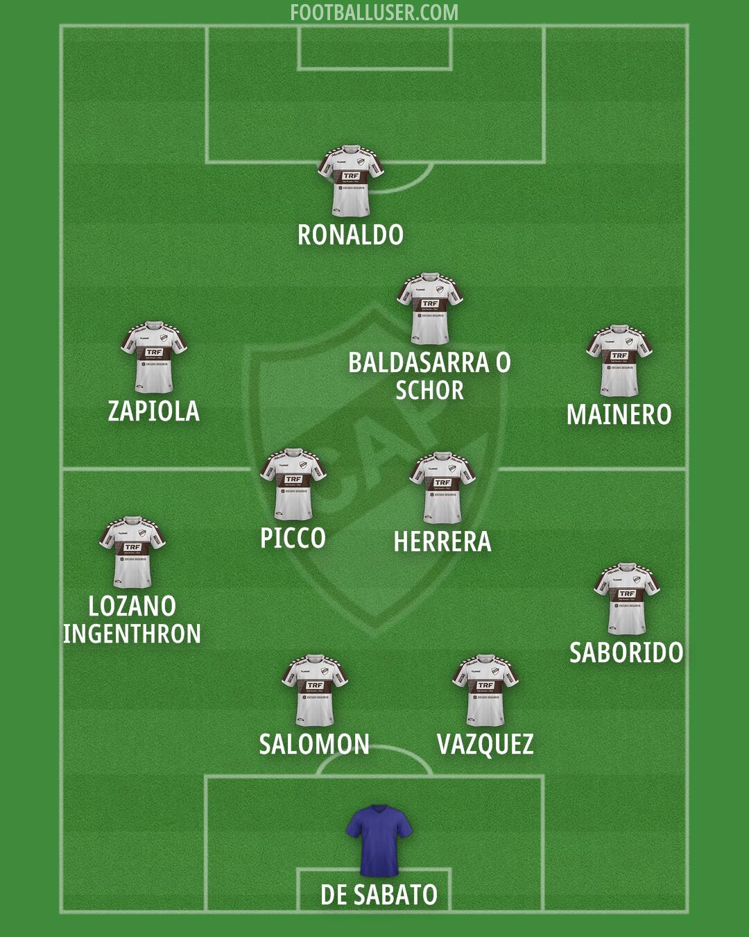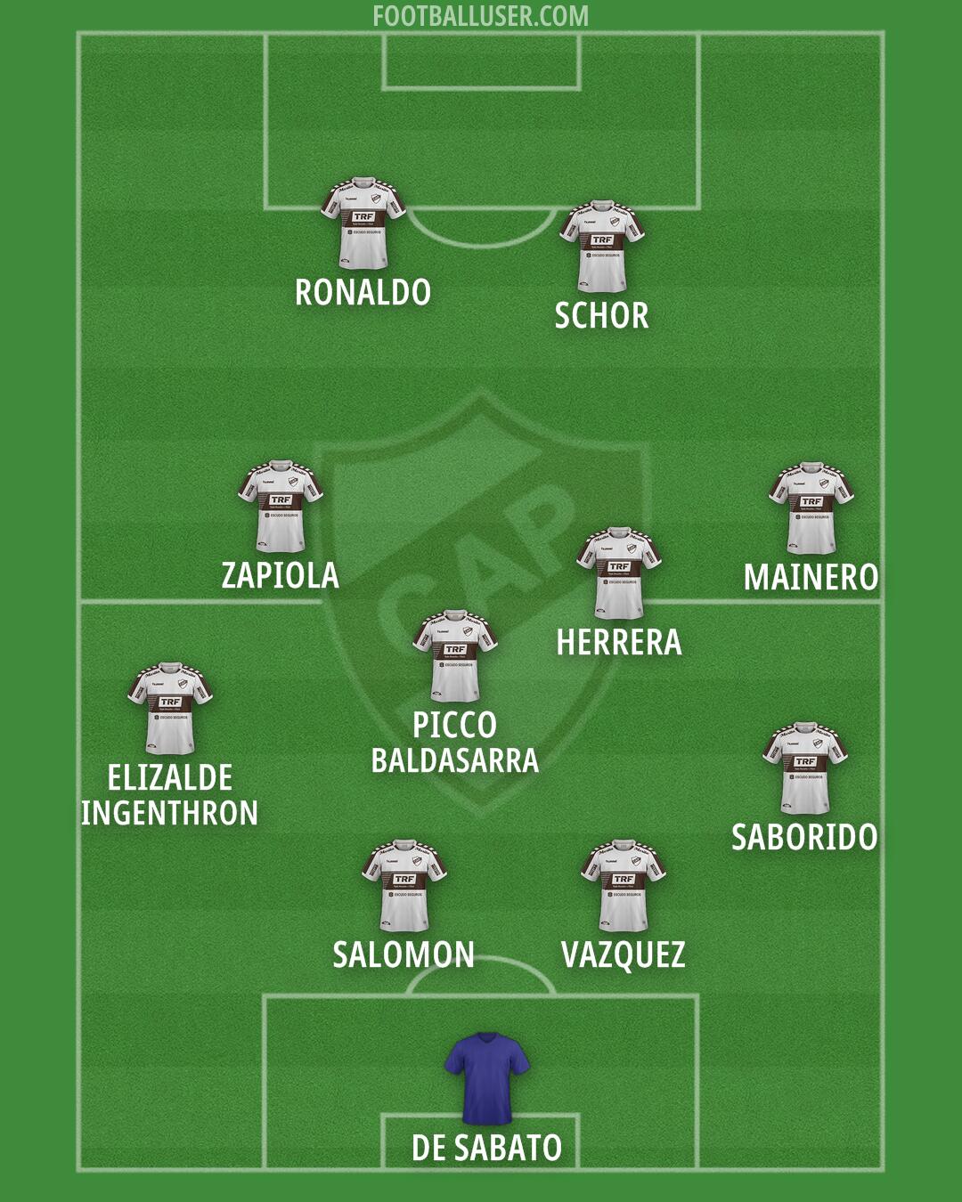 SABORIDO · VAZQUEZ · SALOMON · LOZANO (INGENTHRON) · HERRERA · PICCO · ZAPIOLA · RONALDO · MAINERO · BALDASARRA O (SCHOR) · DE SABATO