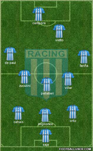 Vietto · Fariña · Centurión · Zuculini · De Paul · Pelletieri · Corvalán · Pillud · Ortiz · Cahais · Chino Saja (C)