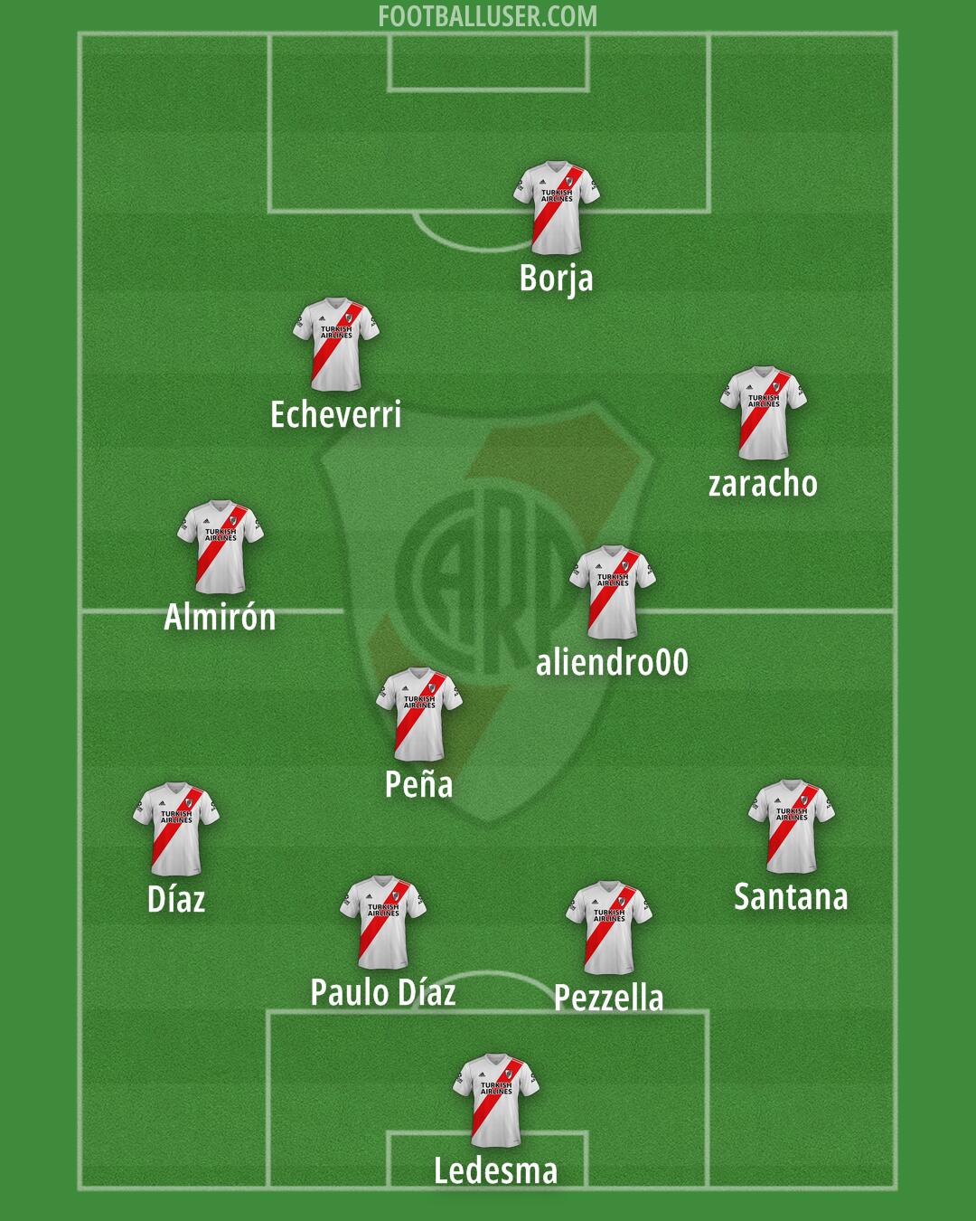 1- F. Armani · 4- G. Montiel* · 28- M. Quarta* · 33- G. Pezzella · 21- M. Acuña · 24- E. Pérez · 34- G. Galoppo* · 8- M. Meza · 10- M. Lanzini · 9- M. Borja · 11- F. Colidio