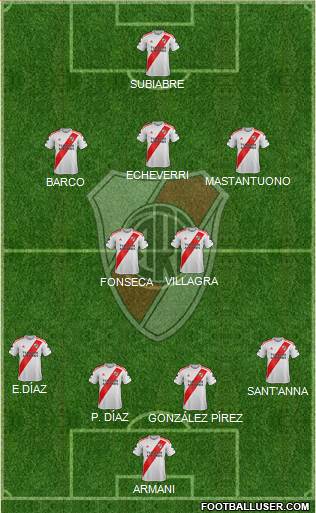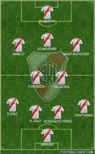 1 Armani · 6 Pezzella · 14 González Pirez · 17 P.Díaz · 16 Bustos · 23 Villagra · 31 Simón · 24 Acuña · 30 Mastantuono · 11 Colidio · 9 Borja