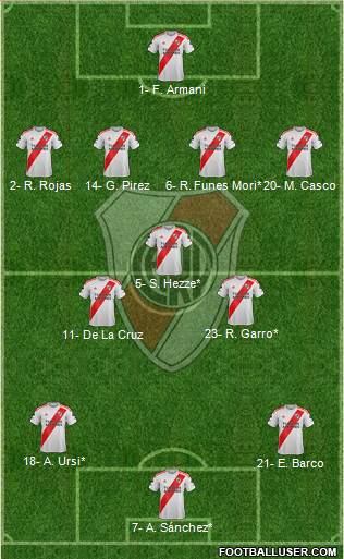 Armani · Pezzella · P.Diaz · Boselli · E.Diaz · Villagra · Pereyra · Echeverri · Colidio · L. Rodriguez · Borja