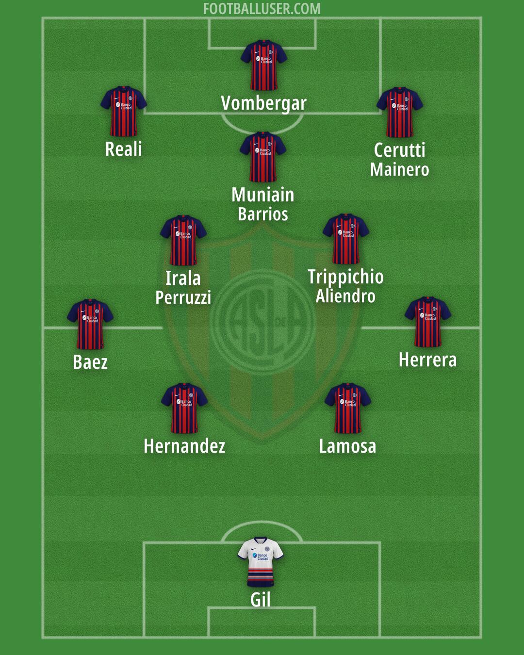 Gil (Devechi) · Herrera (Lopez) · Baez (Benegas) · Romañana (Lorenzon) · Hernandez (James) · Trippichio (Sosa) · Perruzzi (Insuarralde) · Gulli (Barrios) · Cerutti (Hausch) · Ladastatter (Reali / Ojeda) · Cuello (Hernandez)