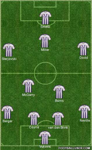 Vukovic · van den Brink · Coyne · Howarth · Neville · Burns · Miller · Andrezinho · Dodd · Mehmet · Smeltz