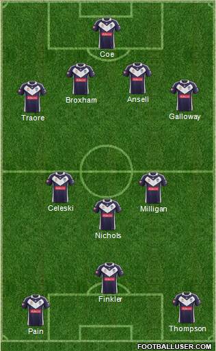 Pain · Thompson · Finkler · Nichols · Milligan · Celeski · Traore · Galloway · Broxham · Ansell · Coe