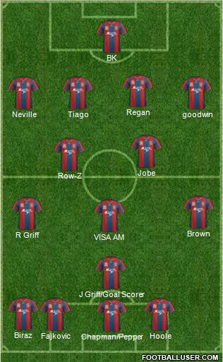 Chapman/Pepper · Fajkovic · Hoole · Biraz · J Griff/Goal Scorer · VISA AM · R Griff · Brown · Row-Z · Jobe · Neville · Tiago · goodwin · Regan · BK