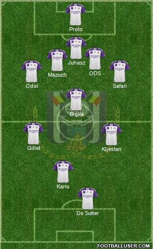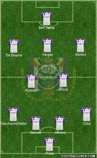 Proto · Mazuch · Juhasz · Deschacht · Odoi · Kouyaté · Biglia · Vargas · Suarez · Legear · De Sutter