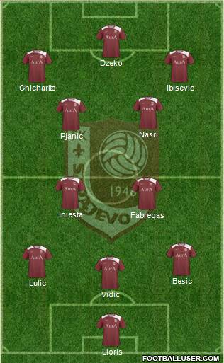 Victor Valdes · N. Vidić · C. Puyol · D. Maicon · P. Evra · Xavi · C. Fabregas · A. Iniesta · L. Messi · D. Villa · Cicharito