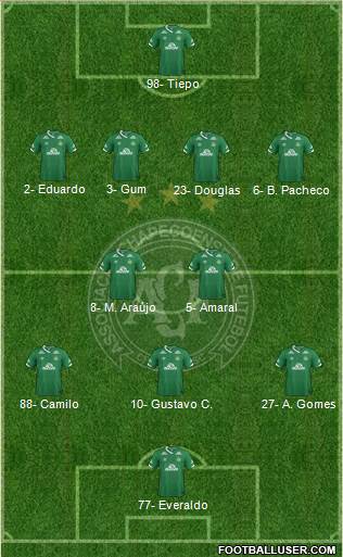 9- Everaldo · 18- E. Felipe* · 10- G. Campanharo · 11- Artur* · 8- M. Araújo · 55- Renê Jr.* · 6- B. Pacheco · 3- Gum · 23- Douglas · 2- Eduardo · 98- Tiepo
