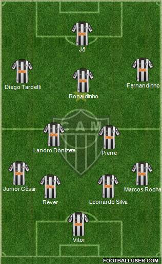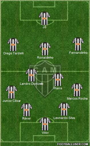 1- Victor · 3- Leonardo Silva · 4- Réver · 14- Lucas Cândido · 2- Marcos Rocha · 28- Josué · 5- Pierre · 11- Fernandinho · 10- Ronaldinho · 9- Tardelli · 7- Jô