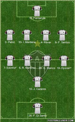 1- Victor · 2- M. Rocha · 3- Léo Silva · 4- Réver · 6- Jr. César · 5- Pierre · 8- L. Donizete · 11- Bernard · 10- R. Gaúcho · 9- D. Tardelli · 7- Jô