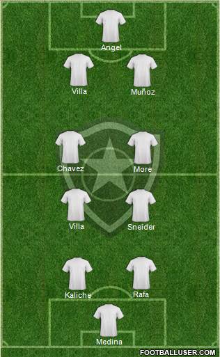 1 - Jefferson · 21 - Dória · 4 - Bolívar · 16 - Lima · 13 - Gilberto · 5 - M.Mattos · 15 - Gabriel · 10 - Seedorf · 31 - Vitinho · 14 - Lodeiro · 20 - Rafael Marques