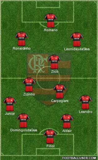 1- D. Alves · 3- Léo Duarte · 4- R. Caio (C) · 2- Rodnei · 6- Renê · 8- Piris da Motta. · 5- Cuellar · 7- J. Lucas · 10- Arrascaeta. · 11- Vitinho · 9- Gabriel
