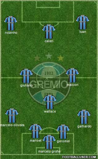 1-Grohe · 3-Geromel · 16-Wesley · 26-Oliveira · 2-Wallace · 5-Walace · 10-Douglas · 19-Maicon · 7-Luan · 8-Giuliano · 13-Bobô