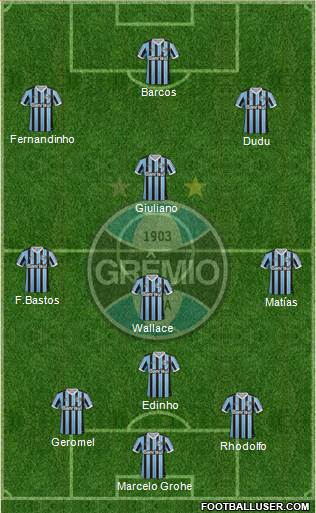Grohe · Rhodolfo · Geromel · Marcelo O. · Matías · Walace · Riveros · Douglas · Éverton · Giuliano · Barcos