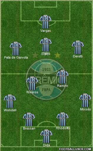 Grohe · Rhodolfo · Geromel · Wendell · Pará · Edinho · Riveros · Maxi · Deretti · Luan · Barcos