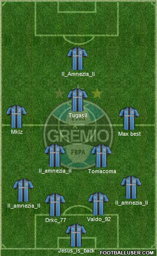 Marcelo Grohe · Mário Fernandes · Rodolfo · Gabriel · Lúcio · Rochemback · G. Silva · Douglas · Leandro · Miralles/Escudero · Brandão