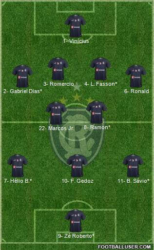 9- Zé Roberto* · 11- B. Sávio* · 10- F. Gedoz · 7- Hélio B.* · 8- Ramon* · 22- Marcos Jr. · 6- Ronald · 2- Gabriel Dias* · 4- L. Fasson* · 3- Romercio · 1- Vinícius