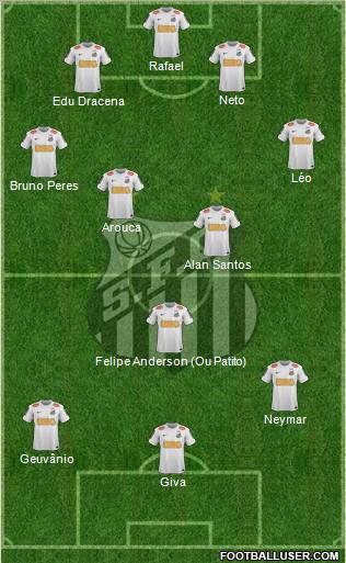 Neymar · Nenê · Felipe Anderson · Montillo · Cícero · Arouca · Bruno Peres · Guilherme Santos* · Edu Dracena · Durval · Rafael