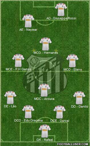 Rafael · Durval · Jorge Fucile · Edu Dracena · Adriano · Arouca · Henrique · Patricio Rodriquez · Neymar · Andre · Ganso