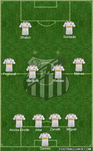 Rafael Cabral · Edú Dracena · Durval · Bruno Peres · Júan · Adriano · Arouca · Felipe Anderson · P.Rodríguez · Neymar · André