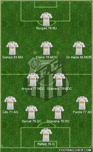 Rafael · Durval · Léo · Edu Dracena · Fucile · Arouca · Ibson · Felipe Anderson · Ganso · Neymar · Kardec