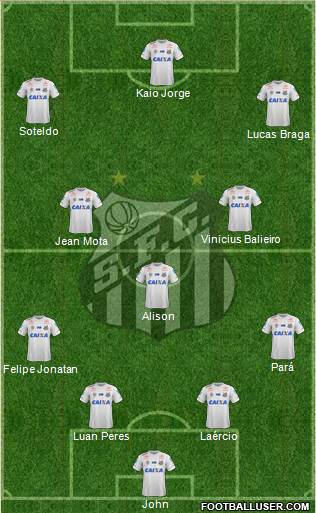 34- João Paulo · 28- Kaiky Melo · 14- Luan Peres · 3- F. Jonatan · 4- Pará · 5- Alison · 17- Vinícius B. · 30- Lucas Braga · 10- PH. Ganso* · 11- Marinho · 9- Kaio Jorge