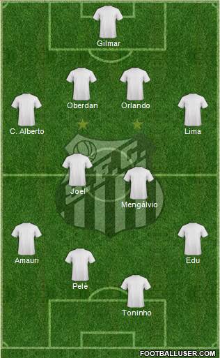 Pelé · Neymar Jr. · Antonio "Coutinho" · Cloloaldo · Ronbinho · Pepé · Alison · Gustavo Enrique · Marcelo · Alex · Rafael Cabral
