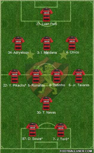 9- S. Tréllez · 30- T. Neves · 2- Patric · 18- Betinho · 8- D. Augusto* · 22- Everton* · 77- Marcão · 34- Adryelson · 6- I. Maidana · 35- Sabino* · 27- Luan Polli