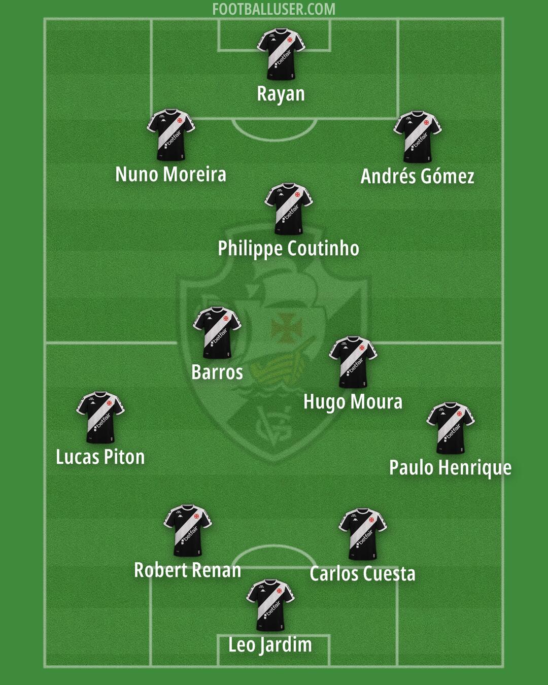 Leo Jardim · Paulo Henrique · Cuesta · Robert Renan · Lucas Piton · Hugo Moura · Barros · Coutinho · Gómez · Nuno Moreira · Rayan