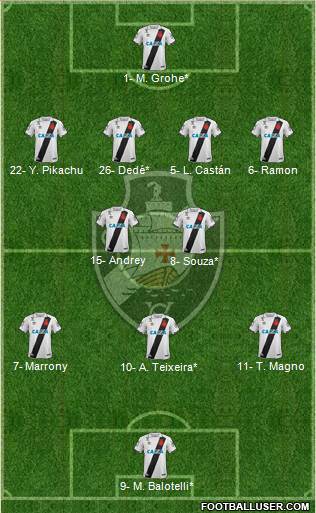 1- Lucão · 2- C. Tenório · 26- Dedé* · 4- R. Graça · 6- Riquelme · 8- Andrey · 5- Souza* · 25- J. Sánchez · 7- G. Pereiro* · 10- A. Teixeira* · 14- G. Cano