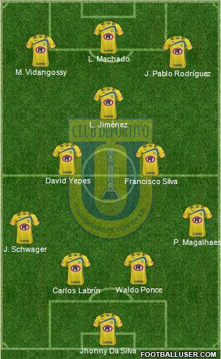 Jhonny Da Silva · Carlos Labrín · Waldo Ponce · J. Schwager · P. Magalhaes · Francisco Silva · David Yepes · L. Jiménez · J. Pablo Rodríguez · M. Vidangossy · L. Machado