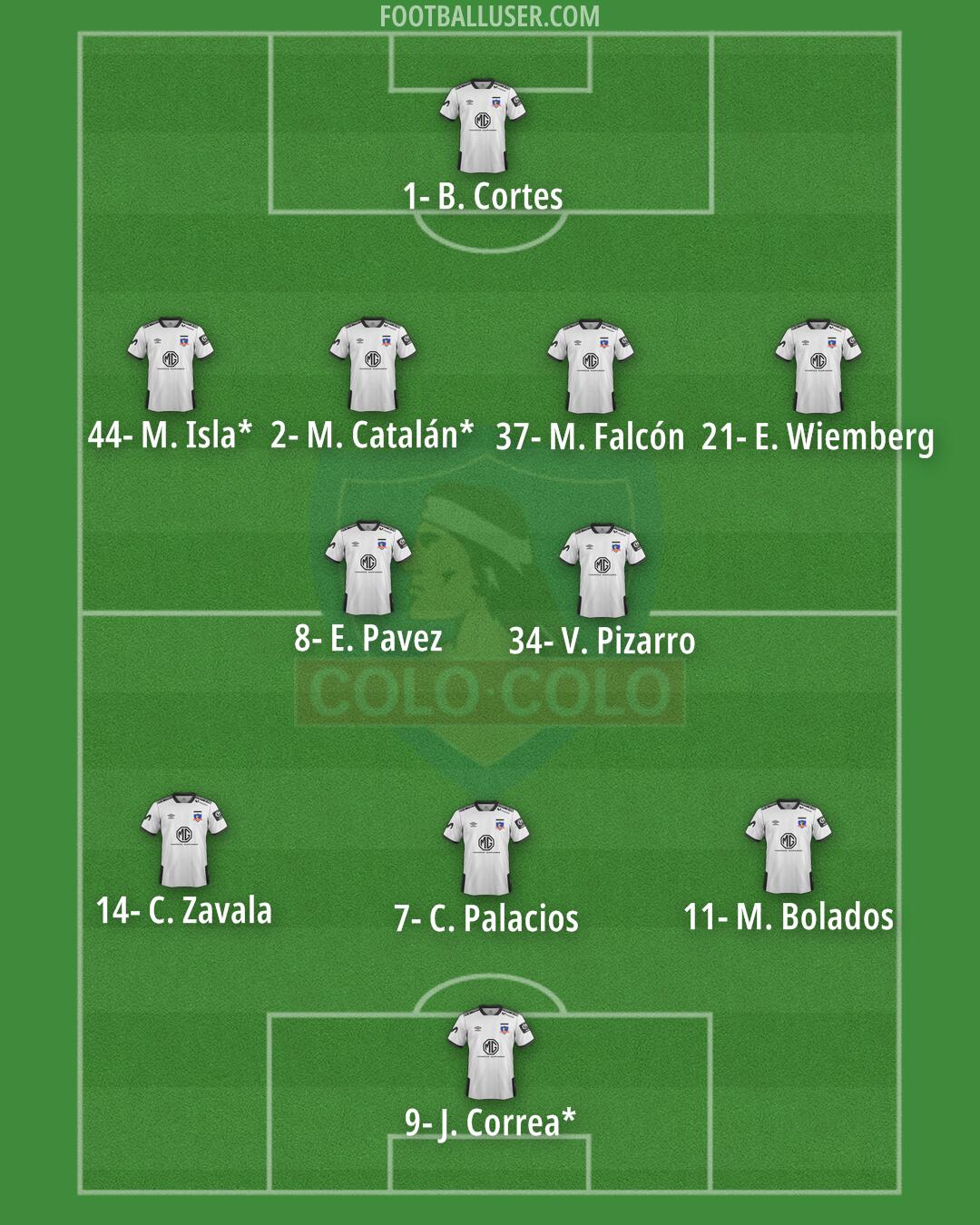 30- P. De Paul · 2- J. Villagra · 15- E. Amor · 21- E. Wiemberg · 14- C. Zavala · 19- S. Rodríguez · 23- A. Vidal · 25- T. Alarcón · 7- J. Marchant · 5- V. Méndez · 22- M. Isla