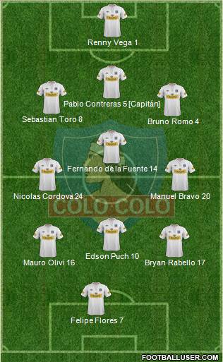 Renny Vega 1 · Pablo Contreras 5 [CAPITÁN] · Sebastian Toro 26 · Bruno Romo 23 · Braulio Leal 8 · Rodrigo Millar 14 · Manuel Bravo 20 · Emiliano Vecchio 11 · Edson Puch 10 · Bryan Rabello 17 · Luca Pontigo 9