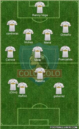 Esteban Paredes 7 [Capitán] · Mauro Olivi 16 · Bryan Rabello 17 · Ariel Paez 30 · Manuel Bravo 28 · Rodrigo Millar 14 · Rafael Caroca 21 · Bruno Romo 23 · Luis Mena 3 · Pablo Contreras 15 · Renny Vega 32