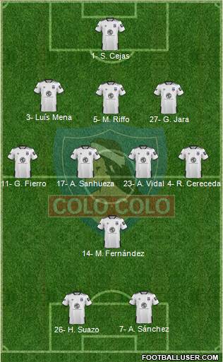 12- E. Villanueva · 16- Ó. Opazo · 4- A. Saldívia · 2- J. Villagra · 17- C. Riquelme* · 23- A. Vidal · 8- E. Pavez · 11- M. Bolados · 9- J. Correa · 26- M. Moya · 32- L. Cepeda