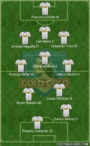 Roberto Gutiérrez 22 · Esteban Paredes 7 · Rodrigo Millar 14 · José Pedro Fuenzalida 13 · Lucas Wilchez 18 · Alvaro Ormeño 4 · Osmar Molinas 5 · Andres Scotti 19 · Nelson Cabrera 33 · Christián Vilches 2 · Francisco Prieto 25