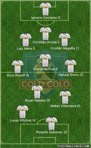 Juan Castillo 1 · Christian Vilches 2 · Luis Mena 3 · Patricio Jerez 24 · Boris Rieloff 15 · Osmar Molinas 5 · Marco Medel 10 · Mauro Olivi 16 · J.P. Fuenzalida 13 · Esteban Paredes 7 · Roberto Gutierrez 22