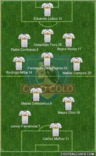 Juan Castillo 1 · Christián Vilches 2 · Luis Mena 3 · Sebastián Toro 26 · Boris Rieloff 15 · Osmar Molinas 5 · Rodrigo Millar 14 · Marco Medel 10 · Mauro Olivi 16 · Esteban Paredes 7 · Roberto Gutierrez 22