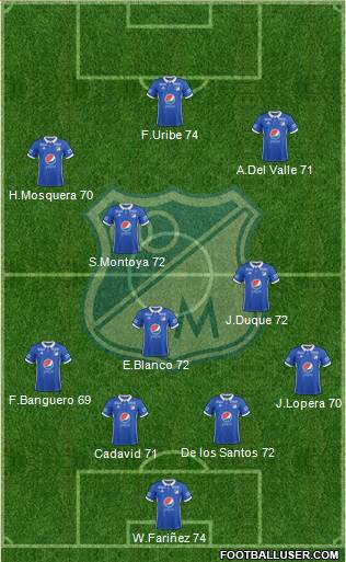 Fariñes · Cadavid · Santos · Banguero · Palacios · Duque · Silva · Dominguez · Montoya · Mosquera · Ayron