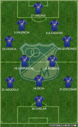 Vikonis · Cadavid · Vega · Henao · Machado · Carrascal · Blanco · Estrada · Núñez · Silva · Rangel