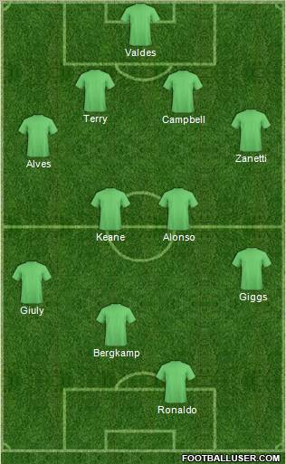 Valdes · Terry · Campbell · Zanetti · Alves · Keane · Alonso · Giggs · Giuly · Bergkamp · Ronaldo