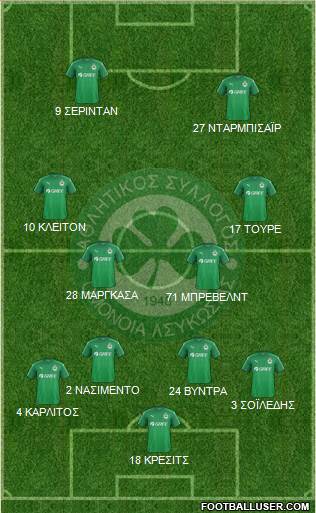 Panagi · Vyntra · Katelaris · Soiledis · Demetriou · Margaca · Toure · Cleyton · Ziziros · Christofi · Derbyshire