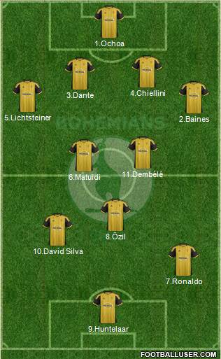 1.Ochoa · 4.Chiellini · 3.Dante · 5.Lichtsteiner · 2.Baines · 11.Dembélé · 6.Matuidi · 8.Özil · 10.David Silva · 7.Ronaldo · 9.Huntelaar