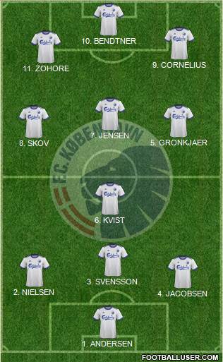 1. ANDERSEN · 4. JACOBSEN · 2. NIELSEN · 3. SVENSSON · 6. KVIST · 8. SKOV · 5. GRONKJAER · 7. JENSEN · 11. ZOHORE · 9. CORNELIUS · 10. BENDTNER