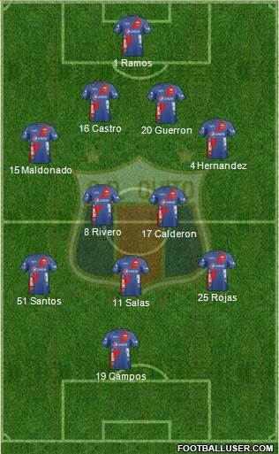 1 Ramos · 16 Castro · 20 Guerron · 4 Hernandez · 15 Maldonado · 8 Rivero · 17 Calderon · 25 Rojas · 51 Santos · 11 Salas · 19 Campos